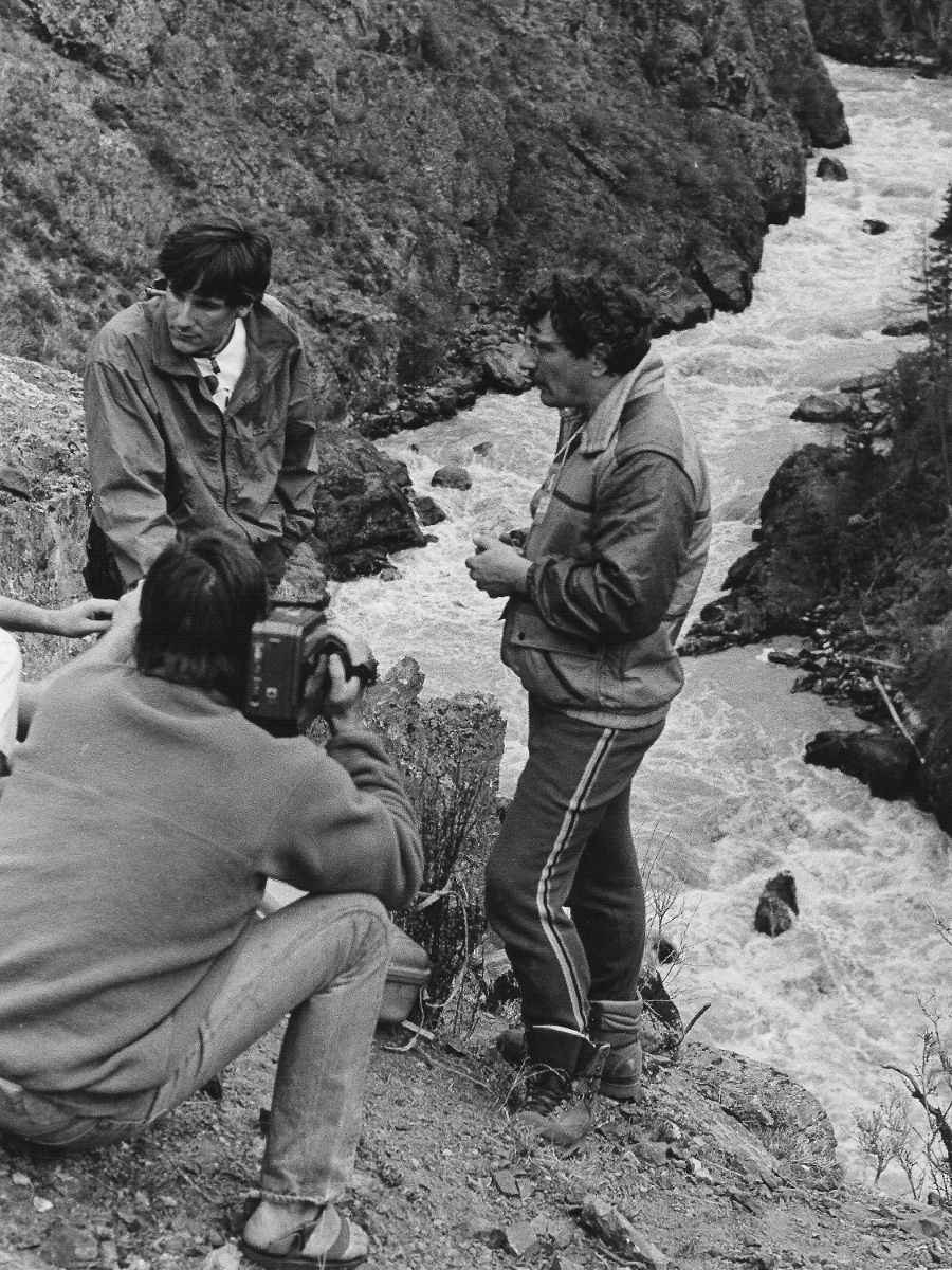Mark natáčí rozhovor Jiba s Míšou nad Mažojskou kaskádou