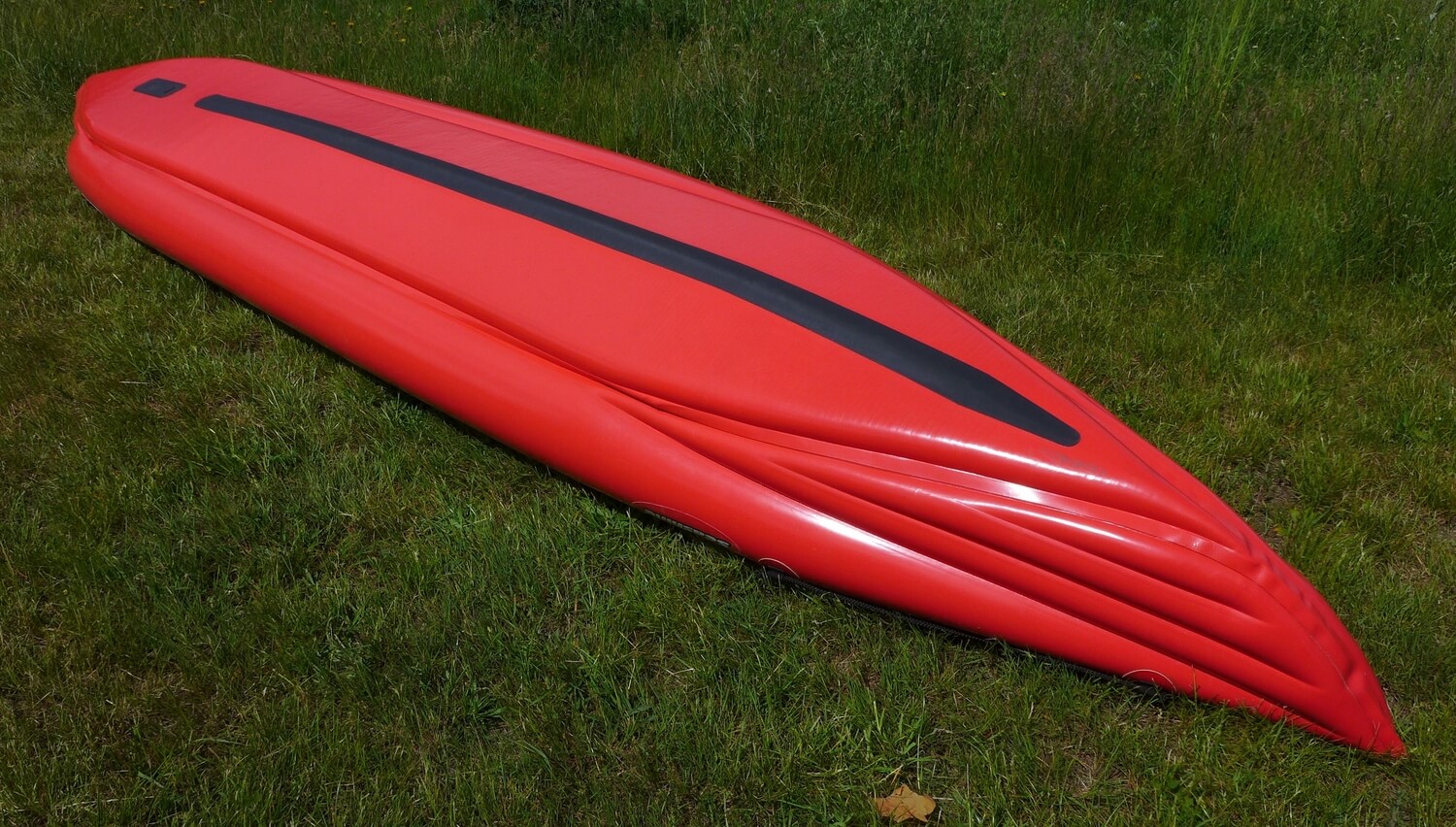 Pohled na dno kajaku. CR páska značí, jak dlouhý je V profil dna.
