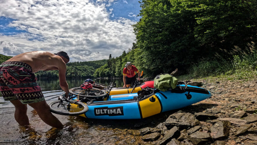 Packraft uveze v pohodě kolo, tudíž koloběžku také.