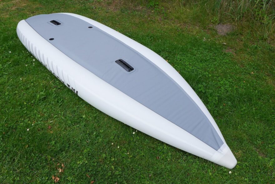Dno kajaku je ploché. Obsahuje dvojici kastlíků pro přídavné ploutve a dvojici vylévacích otvorů. Třetí vylévací otvor je u zadní špice.