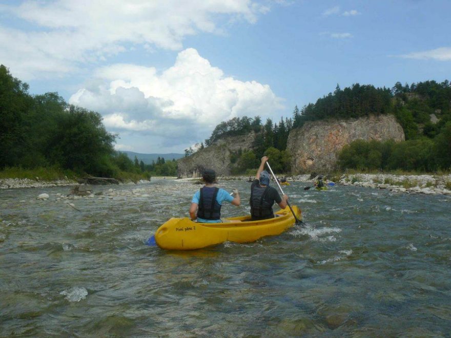 I v lete môže mať Bialka dosť vody aspoň pre plastové lode. V jej dolnom toku si môžete precvičiť čítanie vody v divočiacom koryte. Chyba končí napomenutím v podobe prenášania do správneho koryta. / F: archiv Tomáš Potfaj