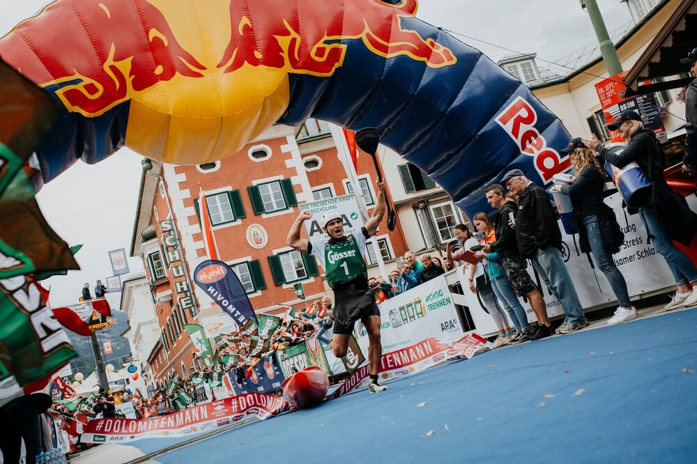 Lukáš přibíhá do cíle, Red Bull Dolomitenmann 2019 / F: Mirja Geh / Red Bull Content Pool