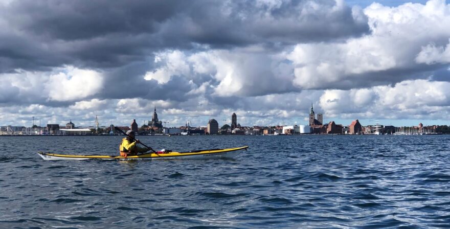 Po levé ruce Stralsund, kde to před víc než týdnem začalo.