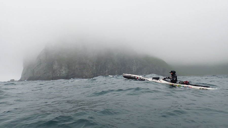 Seal Cape, skalnaté pobřeží bylo často zahaleno v mracích