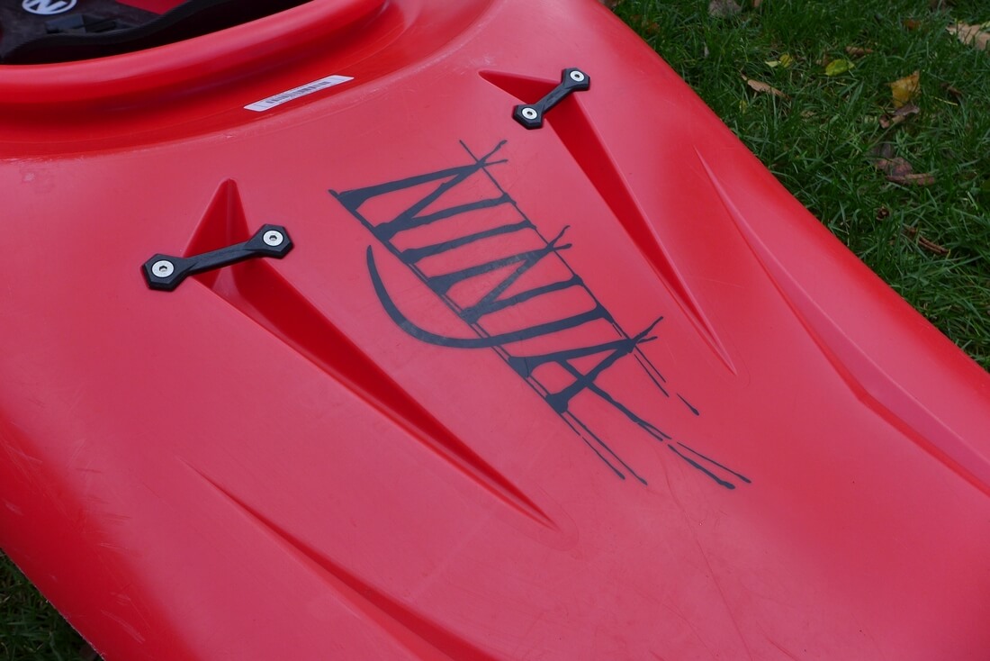 Očka za límcem jsou plastová. Záď lodi nese i její název.