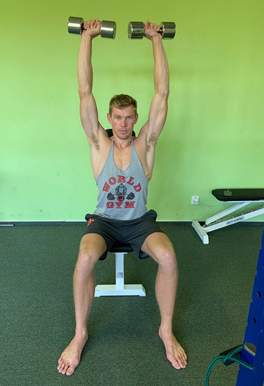 Vzpažení s jednoručkami koncová pozice