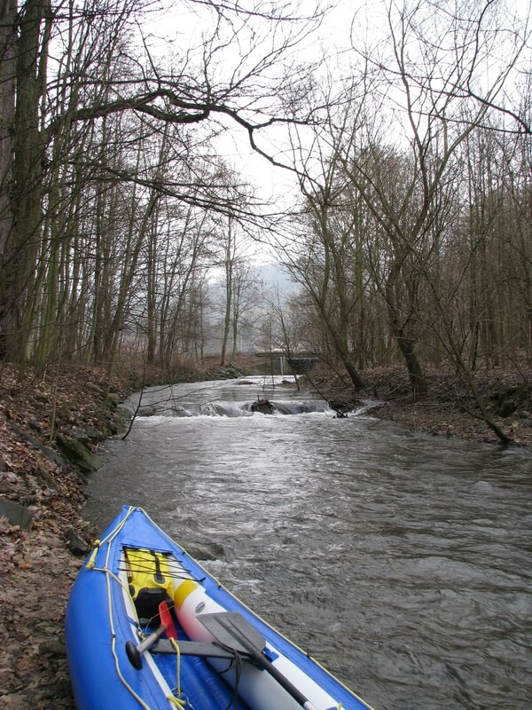Za silničním mostem u Mostkova pod Oskavou. U mostu se nachází vodočet (ř. km 36,7).