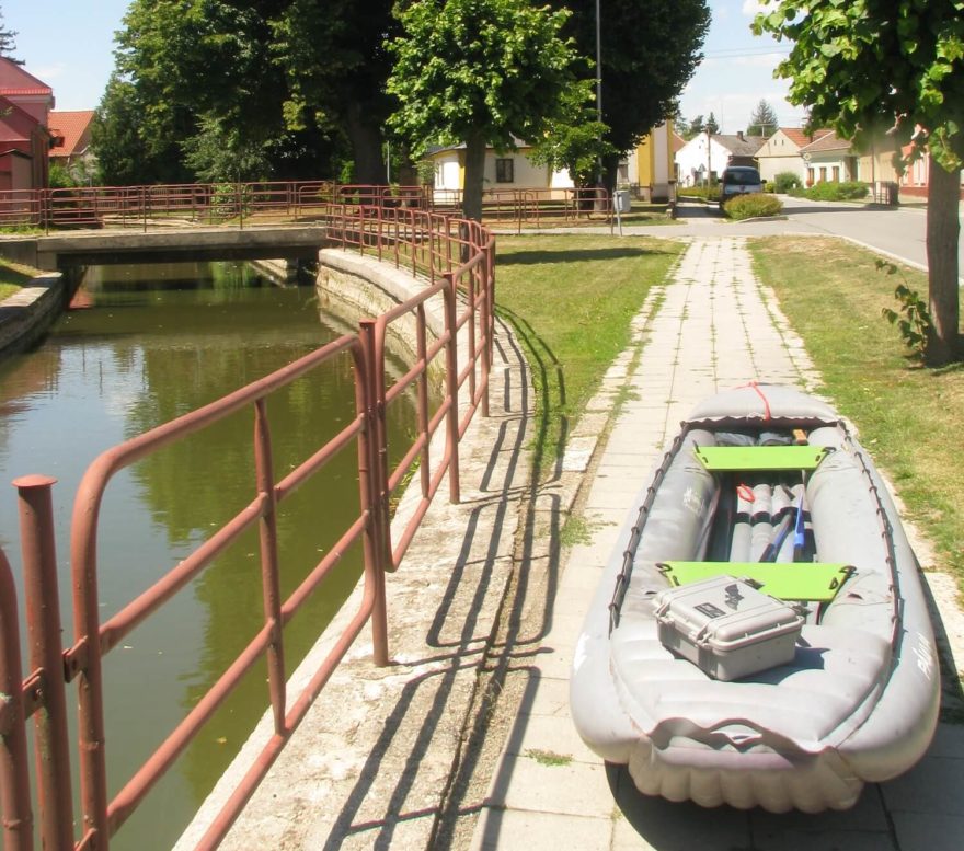 Elektrárna v Pňovicích se přenáší po souběžném chodníku (ř. km 13,3).