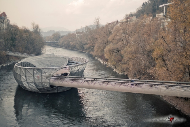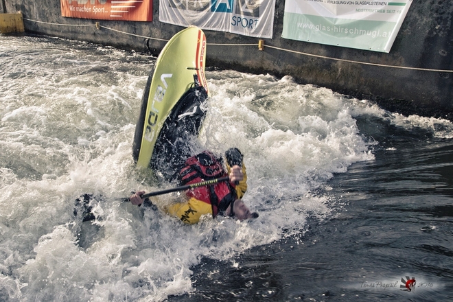 Využíváme toho zpropadenýho facebooku a domlouváme po něm čtyřčlennou skupinu kajakářů a singlířů (2+2) ve složení Vilijem, Červajz, Slunda a David Hlaváček. A Otýlie! Velmi nerozhodnej pes. Je pátek odpoledne, šero, podzim a před náma krutě dlouhá cesta. Nálada skoro k breku. Ale protože vyzvedáváme venkovana Červinku v Houští nad Opicí, dozvídáme se pár historek z tamního podsvětí a to nám náladu zlepšuje. Červajz navíc mluví celou cestu až do Černý hory, kde všechny chmury definitivně zaháníme zastávkou v motorestu a nacpáním břich dost mocnejma burgerama. V 1hodinu ráno jsme na místě. Ubytko máme zajištěný u lokála Marcela Blodera, kousek od centra Grazu. Je pozdě. Jdeme spát. Marcel ještě pracuje na proslovu, protože zítra ho čeká slavnostní otevření playspotu MUGL WAVE, který nedávno vybudoval a který jsme přijeli vyzkoušet.