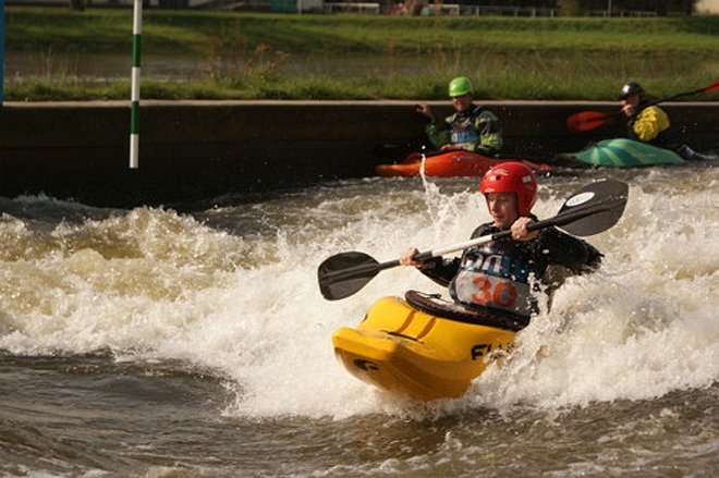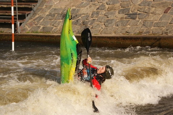 Po obědě nás čeká poslední ježdění a jako sladká tečka za celým víkendem je pro ty nejodvážnější závod ve freestylu. Klání probíhalo na vlně uprostřed kanálu. Závodníci se nebojácně poprali se všemi jejími nástrahami a ještě při tom předváděli kontrolované a pečlivě naplánované jízdy.