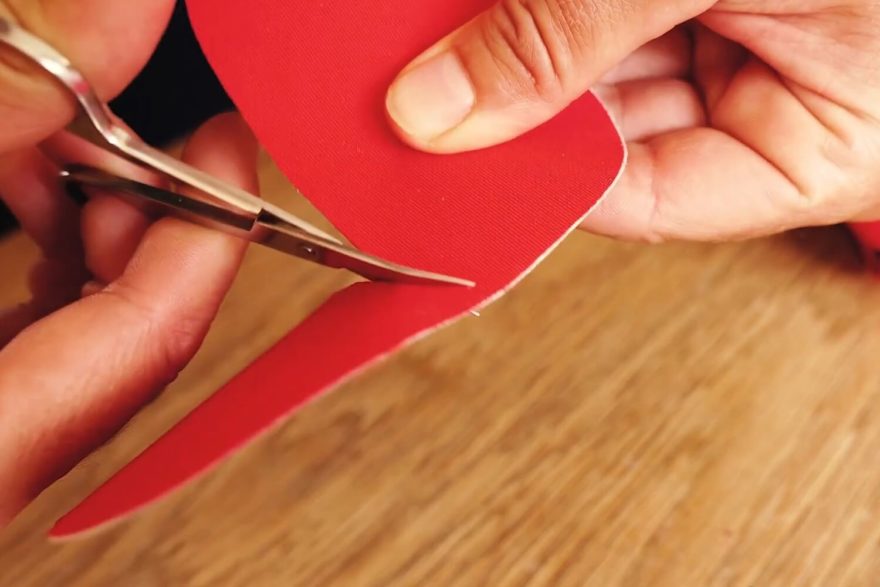 | 10. | Otočte suché oblečení naruby, nyní zalepíme díru zevnitř. |