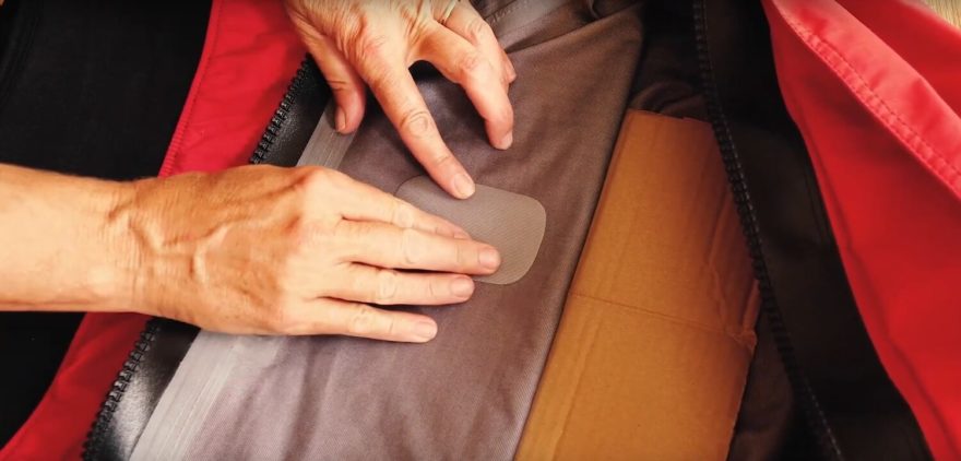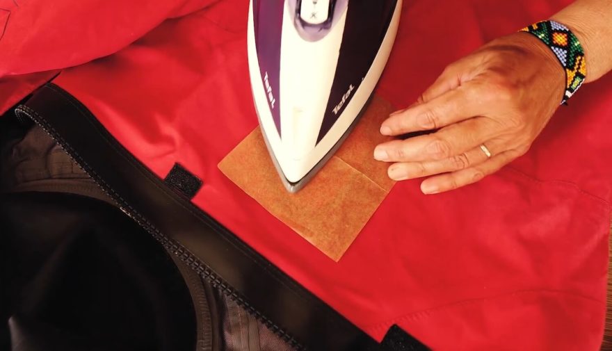 | 9. | Po zažehlení je dobré záplatu co nejrychleji zchladit, lepidlo bude lépe držet. Celý proces s žehličkou a chlazením můžete opakovat 2 – 3x. Pak byste měli cítit, že záplata pevně drží. A znovu opakujeme – jestliže nemůžete nastavit teplotu na žehličce, buďte velmi opatrní, abyste nepřesáhli 160 °C, raději proces žehlení a chlazení opakujte vícekrát. |