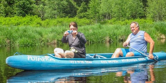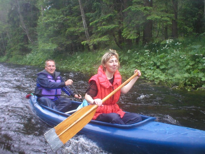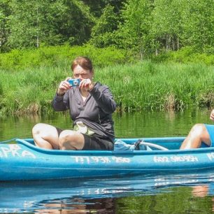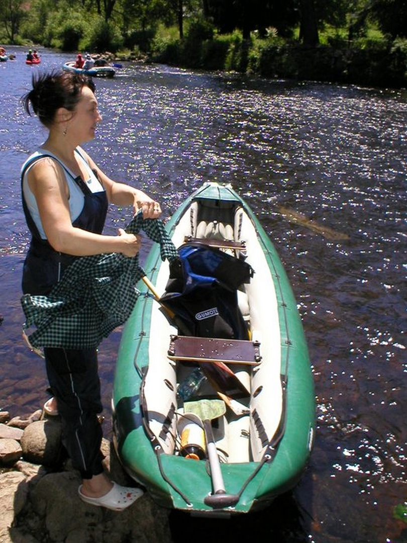 Zde jsem půjčil na hodinu „Vydru“, laminátovou kánoi, abych si ji vyzkoušel v lodi. Seděla v ní jak přišitá, loď neměla takové to zvláštní „chvění“, jak mívá s některými lidmi, a pak vám nezbude, než celou dobu jenom hlídat, abyste se „necvakli“. Lidé se prostě dělí na ty, s nimiž loď chvění nemá a na ty, s nimiž má. A je to navíc neměnná situace a mnozí z těch, s nimiž chvění má, by dokonce strašně rádi jezdili na vodu a mnozí i jezdí!… Upřímně lituji je i jejich blízké.