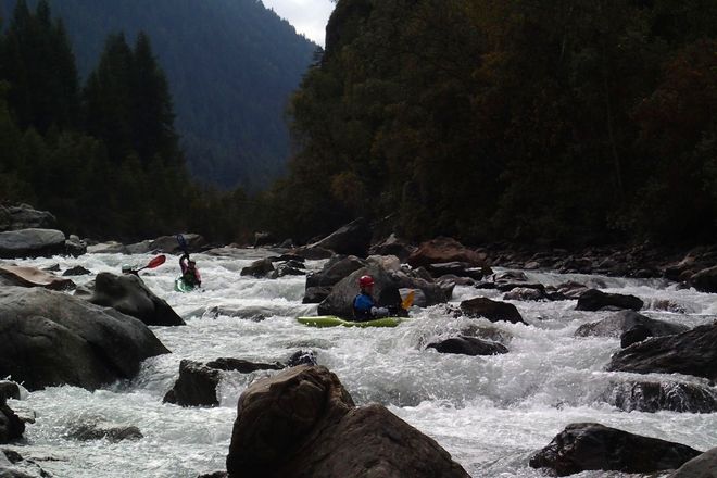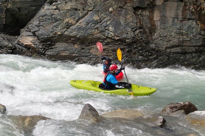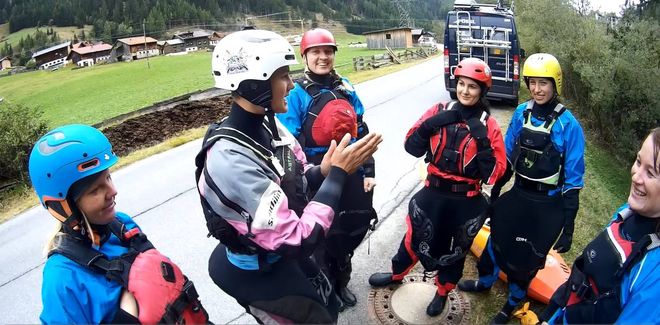 Zbytek víkendu jsme si pak už jezdily podle toho, co komu vyhovovalo (spodní Oetz, Lesní soutěsku, spodní Venter, Sannu a ty nejzdatnější i Mezimostí a Wellerbrücke), ale už se nám nepovedlo utvořit čistě dámskou skupinku, vždycky se nám tam 1-2 páni nějak přimíchali. Ale stejně to bylo vtipný vidět výrazy některých kajakářů, když kolem projela asi šestá holka a žádnej kluk v dohledu. Skoro to vypadalo, že snad viděli ducha nebo co 🙂