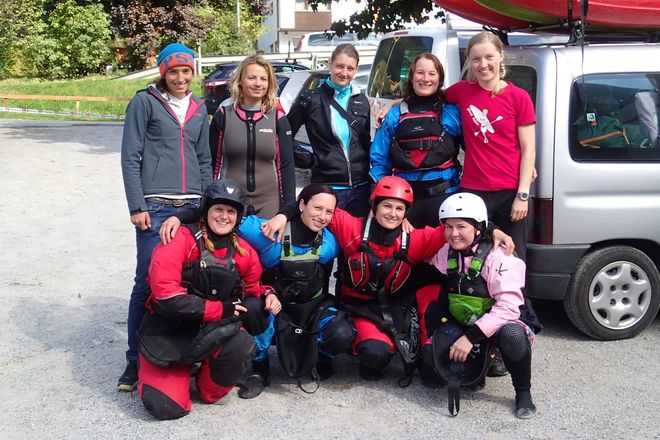 S nápadem udělat dámskou jízdu přišla Marťa z Blond Riders, která založila (kde jinde než na facebooku) skupinu „holčičí pádlování“. Každá z nás samozřejmě vyráží někam pádlovat, ale vždycky jsme v partičce v podstatné menšině, takže se zrodil nápad vyrazit na vodu taky jednou bez chlapů. Některé jsme se navzájem znaly z jiných akcí, s dalšími se někdo znal od vidění nebo z doslechu a s někým vůbec. Každá jsme v pádlování na jiné úrovni, takže se rozhodlo, že pojedeme na Oetz – tam a v okolí jsou úseky různých obtížností a každá z nás si rozhodně zajezdí.