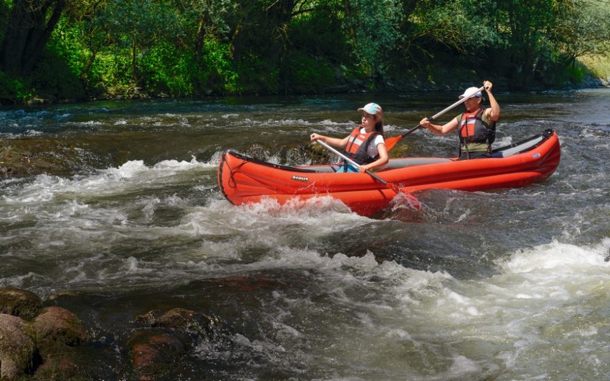Přestože před pár dny v horách vydatně pršelo, voda v řece je naprosto čistá. Sedáme do nafukovacích lodí a za chvilku za našimi zády mizí poslední střechy domů.