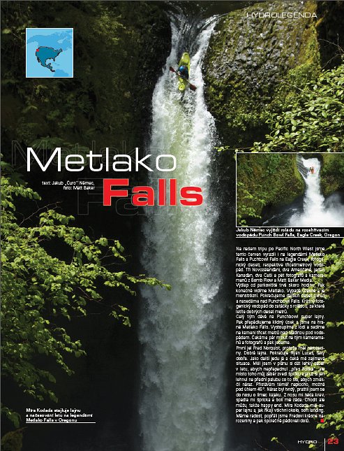 Třicet metrů dolů měří Metlako Falls v Pacifik North West a zalítat si tam byl Čuro s Mírou Kodadou a dalšíma kumpánama. Textík na týhle stránce je krátkej, ale ta úžasná fotka vás tu asi kapánek zdrží. A Čuro zase dokázal že má devět životů.
