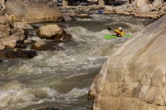 Po chvíli řeka opět opouští stopy civilizace a my si užíváme nádhernou jízdu. Jsme nuceni ještě asi dvakrát prohlížet, ale jinak se jen vezeme a nevěříme, kolik nádherných peřejí sjízdných na oči může být na jedné řece. Skoro jako by tu řeku někdo vytvořil pro potřeby kajakářů.