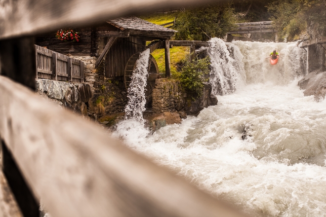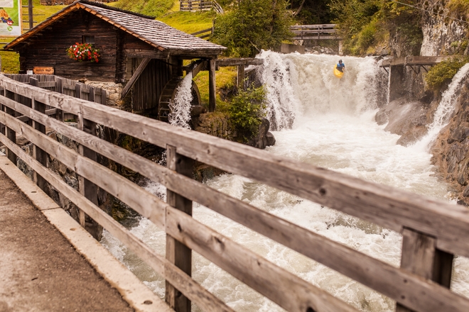 Další den vyrážíme na další zastávku a tou je Kalserbach. Všichni jsme tam poprvé, ale po zkonstatování, že jsme našli správný úsek nastupujeme, s názorem, že to bude takové hezké svezení, podle toho co jsme viděli. Po nástupu se chvíli vezeme podél sinice po příjemné WW II-III , ale jakmile nám silnice zmizí z obzoru začne řeka pokračovat kamenolomem, podobným trochu Tunnelstrecke v údolí Deffereggenu, ale o mnohé bolestivějším pro loď. Po výstupu u dalšího mostu ještě zvažujeme, jestli by se to nedalo dojet těch zbylých několik kilometrů do Iselu, ale po pohledu na soutěsku s jedinou cestou pouze po řece dolů raději sedáme do auta a se začínajícím deštěm vyrážím na horní část Iselu WW III. Po doražení do Hinterbichlu, kde tento úsek začíná, koukáme na řeku s barvou Konga a soudíme, že přece nepojedeme bahnem ještě s dvojnásobným množstvím vody než tam má být. Nakonec si pouze skočíme stupeň u starého mlýna v Hinterbichlu, ještě před soutokem s Iselem. Pak už jen navázat a za hrozného deště vyrazit směr domů. No co no, asi jsme před našlápnutým Öetzem utekli na našlápnutý Isel, tak možná příště více shlédnu vodočty, ale i tak myslím, že svezení to bylo super.
