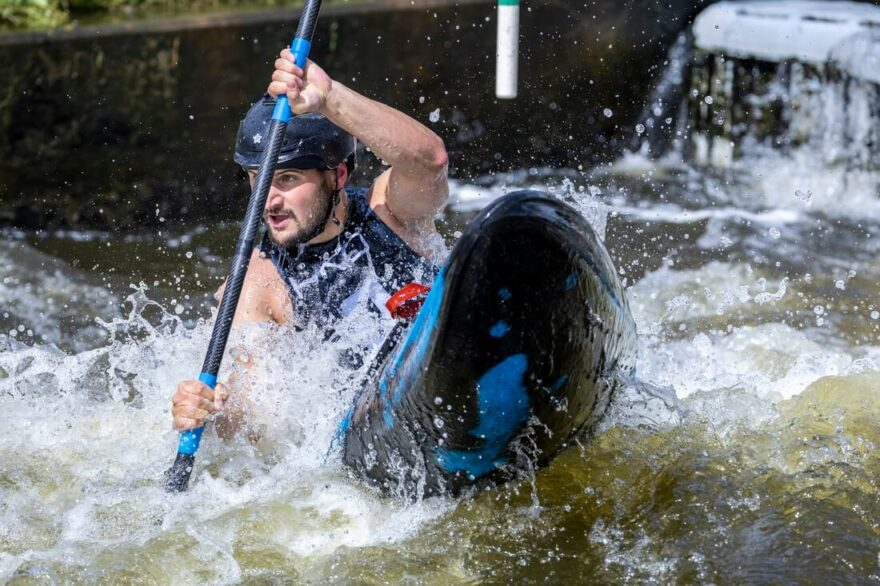 Samozřejmě ale jízda na Olympu není o pozorování špičky na klidné vodě, což poznáte hned jak zavěsíte první vracáky. Kdo zvládá průjezdy vracáků nebo bran na závěs či odhoz si velmi rychle přijde na své, a kdo ne, má pod sebou loď, která dost odpouští, na zádi je stabilní a techniku si tedy tréninkem osvojí. Tohle je zároveň pro mě nejvýznamnější rozdíl oproti přímému konkurentu – ZET Chili, která potřebuje opravdu vytříbenou techniku, aby jízda na ní byla požitkem. Není třeba dodávat, že vytahovat techniku v kayakcrossové mele u brány je poněkud pošetilé. Stabilita na zádi a celkově předozadní stabilita lodi dovoluje použití i pro sjíždění řek, kde budete ohromeni, kolik triků z kanálu jste schopni dostat i na řeku.