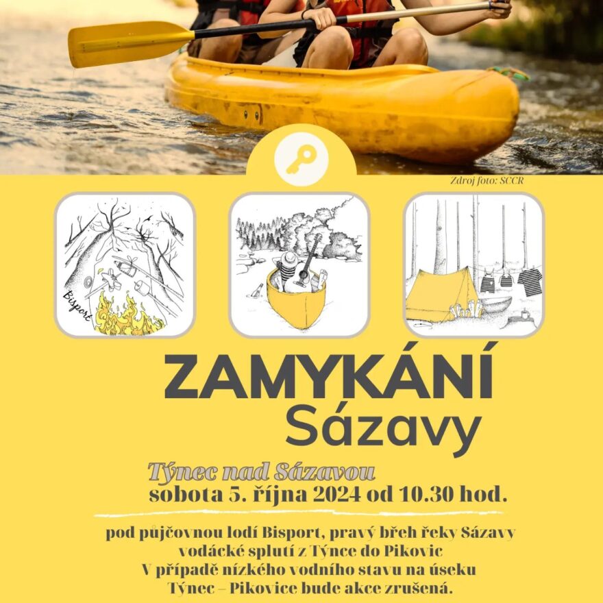 Vodácké splutí z Týnce do Pikovic. V případě nízké vody bude akce zrušena.
