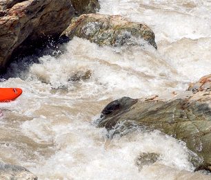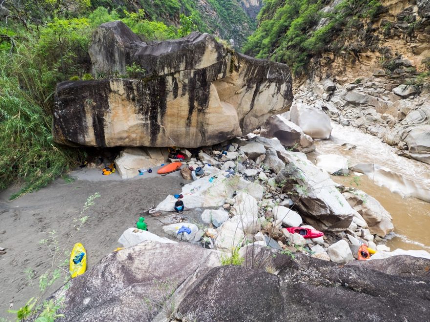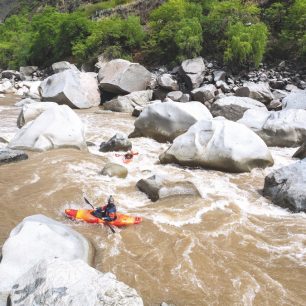 Třetí den je o něco lehčí. Pořád nás ale ještě čeká dost těžkých peřejí. Řeka za poslední hodiny nabrala ještě víc vody. Jízda mi připadá, jako bych jel letní nakoupené Mezimostí a sem tam si odskočil do Tyršovky. Těžší pasáže jsou hodně nepřehledné, řeka často teče mezi kameny, kde je jetelná jenom jedna cesta, ostatní vedou do sifonů. Signalizace v týmu a jistota lajny je extrémně důležitá.