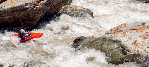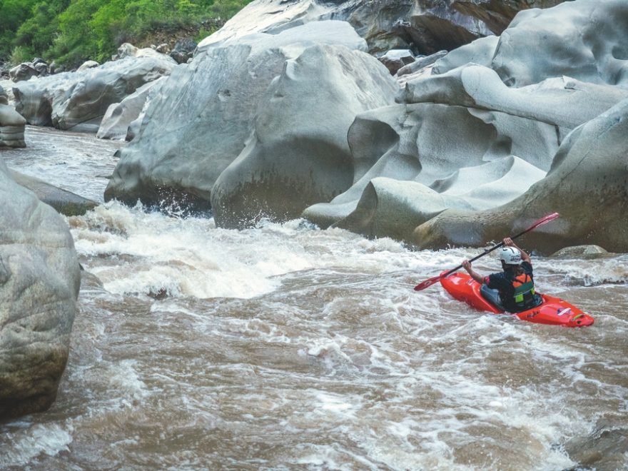 Vzhledem k tomu, že jedeme nalehko a máme jídlo jen na pár dní, vyrážíme po krátké pauze dál, prohlídku ruin si necháme na jindy. Řeka se za mostem víc rozbíhá, ale její obtížnost trochu zvolňuje, a tak nás čeká odpoledne plné velkých boofů a pěkných lajn.