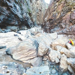 Pocit radosti z namáhavé divoké vody je doprovázený neprostou koncentrací na to, co je před námi, a Abyssmo nám nedává moc prostoru k oddechu. V několika místech se kaňon zavře jen na něco přes deset metrů šířky a stěny nad námi dosahují výšky i tisíc metrů. Chvílemi si připadáme, jako bychom projížděli jeskyní.