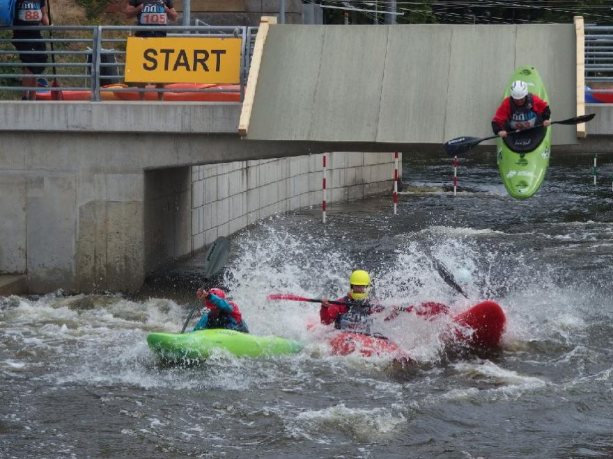 Po odjetí sprintu byla zase byla nějaká ta chvilka na oddech a na volné ježdění, při kterém byl čas od času vidět i raft s kolemjdoucími, kteří si chtěli pádlování prostě jen zkusit. Také závodníci si mohli vyzkoušet branky, které byly připraveny na slalom.