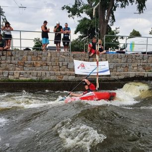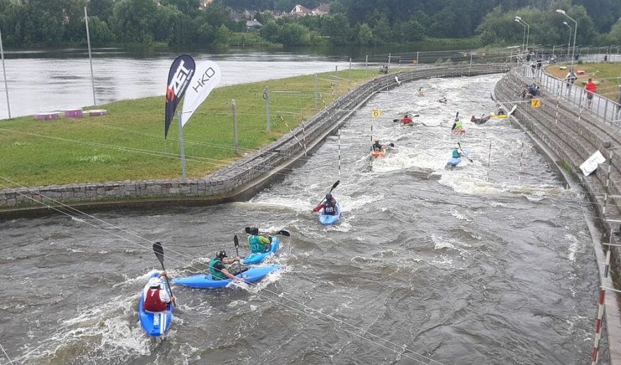 Slalom se jede ve stejném pořadí kategorií jako sprint, k radosti minimálně části zúčastněných jen jedna jízda. Juniorky se vrhají do branek, někdy i mimo ně. Holky, které si nevysloužily žádnou padesátku, zabírají první příčky v této technické disciplíně. Honza Němec ujíždí ostatním klukům do osmnácti let o celých osm vteřin. S jedním pádlem se brankami nejrychleji proplétá Jakub Hrdlička. V kategorii žen byly časy na prvních místech poměrně těsné a v mužích ujel první Vojta Zapletal druhému a nutno říct, že také velmi rychlému, Vikymu Legátovi, o tři a půl sekundy.