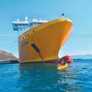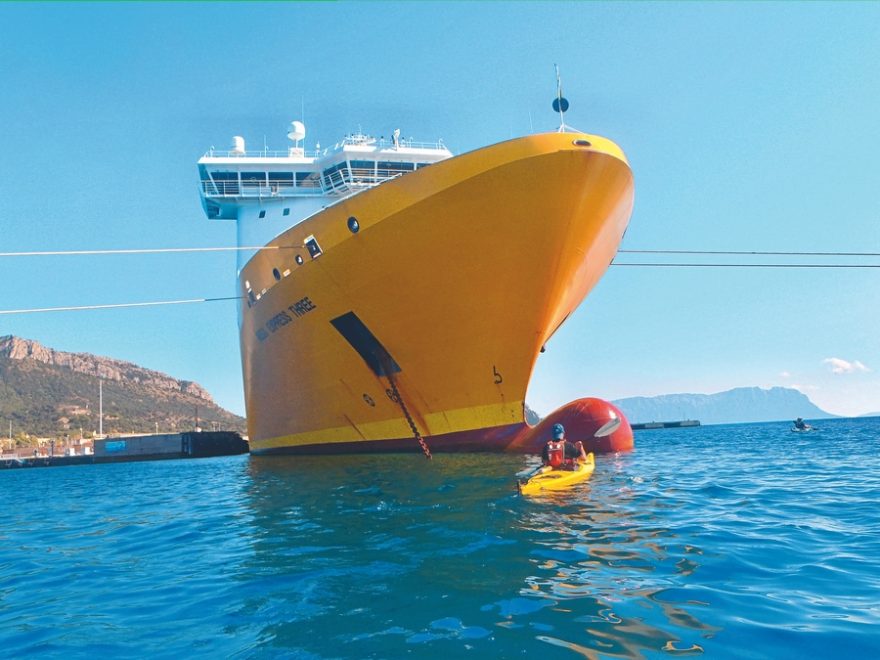 Ještě na trajektu lije jako z konve, ale při přistání už jen projíždíme velkými kalužemi a na ranní obloze se pomalu rozpouští mraky. Z Golfo Aranchi, menšího olbijského přístavu, se přesouváme blíž Tavolaře a za chvíli se ta impozantní skála konečně objevuje na obzoru. Je neděle ráno, a tak se ještě povaluje v peřinách mraků odcházející fronty.
