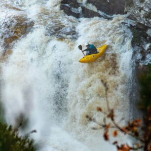 Po pár minutách jízdy autem směrem po proudu přijíždíme k vodopádové sekci končící osmimetrovým vodopádem jménem Dalness. Nejedná se o úplně běžnou záležitost. Za posledních pár let jsme pravděpodobně první skupinka, která sem zavítala a následně nasedla. Důvody, proč se tento krátký úsek nepyšní vysokou návštěvností, jsou na první pohled celkem zřejmé. Již technický nájezd přes první tři dropy významně zmenší skupinku zájemců. Hlavními strašáky jsou však undercut po levé straně přímo na hraně dropu a pulzující kolovadlo, samozřejmě taky s undercutem, v dopadu na straně pravé. Nicméně kromě Michala, který už klepe kosu, se cítíme všichni dobře. Safety máme, Michala za foťákem taky, tak jdeme na to. Každý posíláme dvě povedený lajny a Michal se stará o neméně vydařené fotky.
