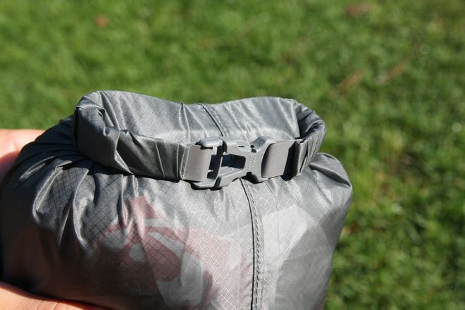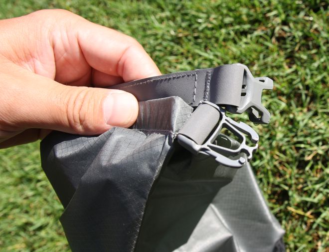 Třetí vychytávkou je použití silikonizované Cordury Ultra Sil, která je velmi lehká a zároveň pevná a dobře se osvědčila už u jiných výrobků Sea to Summit, které jsme pro vás už dříve recenzovali (např. batůžek Dry Day Pack v HYDRU 3/13). Uzavírání loďáku je klasické na několik přetočení (přehnutí) a zapnutí přezkou a zdá se mi šikovné, že je ještě překryté kompresním cylindrem.