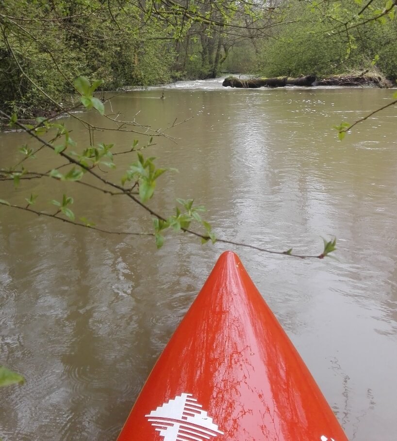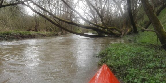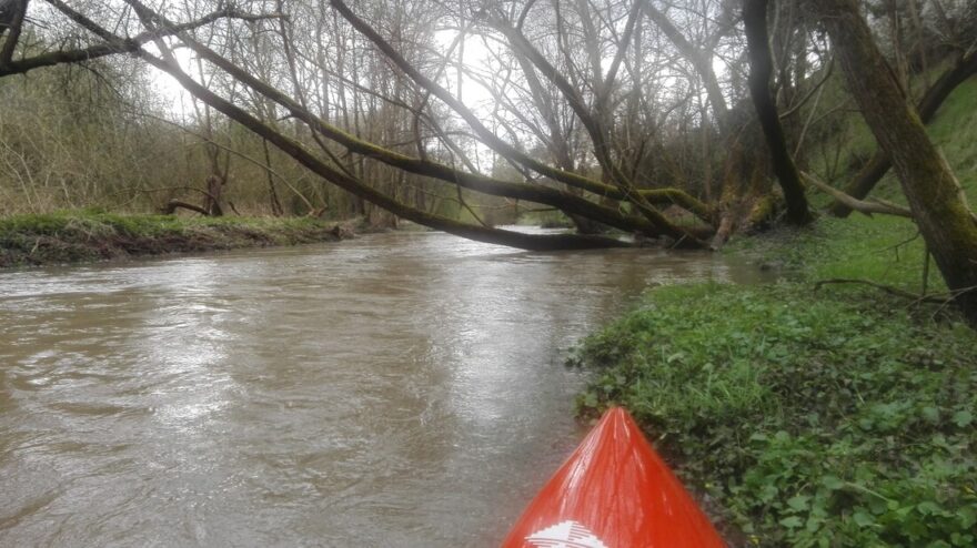 Deštivý duben zvedl hladiny toků a tak se stal sjízdným i Kozský potok, který mi teče za barákem.