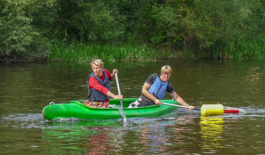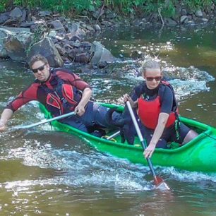 Výcviku a jízdě na kánoi věnujeme největší pozornost. Správný instruktor by měl perfektně ovládat základní instruktáž jízdy na kánoi, aby byl schopen co nejefektivněji zaučit skupinu začínajících vodáků. Dopodrobna rozebíráme metodiku jízdy na kánoi, aby každý účastník pochopil, které detaily jsou pro začátečníky klíčové. Jakmile kurzisté zvládnou jízdu na kánoi na klidné vodě, přesuneme se na vodu proudící, kde využíváme dvou prostředí: proudnice a tišina. A právě v okamžiku, kdy kurzisté začínají ovládat jízdu mezi těmito prostředími, oddělují se od obvyklé vodácké veřejnosti, která jezdí jenom rovně dolů. Nejen profesionální instruktor, ale i zkušený vodák by měl být schopen přetraverzovat řeku, zastavit v tišině nebo vjet do proudu. Tyto základní dovednosti neovládají zdaleka všichni vodáci, kteří na vodu jezdí i desítky let, a o to víc nás vždy potěšila jejich reakce, když rádi přiznali, že doposud neznali nebo neměli zažitý správný náklon či závěs.