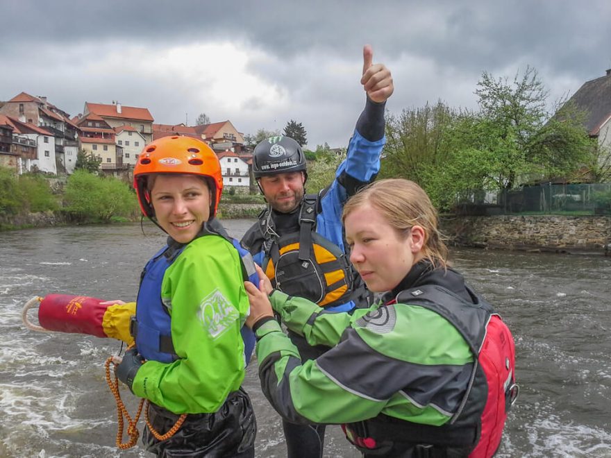 Bezpečnost je prioritou při jakékoliv sportovní činnosti. Proto je třeba mít neustále na zřeteli možná rizika související s provozováním nejen vodáckých aktivit. Během teoretické a především praktické části se účastníci kurzu seznámí s různými způsoby poskytování záchrany na potenciálně nebezpečných místech, mimo jiné i pomocí házecího pytlíku jak v pozici zachránce, tak v pozici zachraňovaného. Důležité je, aby účastníci kurzu pochopili, že je nutné nejen precizně pracovat s „házečkou“, ale že je třeba se také zamyslet nad způsobem poskytnutí záchrany a nad volbou místa, odkud se bude záchrana provádět, aby byla úspěšnost akce co nejvyšší a nedošlo k ohrožení zachraňovaného i zachránce.