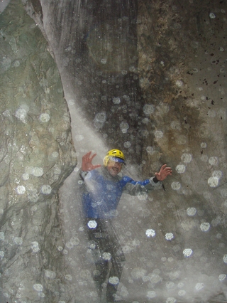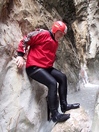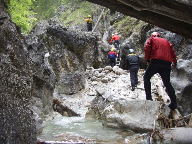 Na doporučení Barase jsme po pár kilometrech zastavili u cedule Bruckgraben a vlezli do kaňonu potoka co přitéká zleva. Prošli jsme ho tam a zpět tak za hodinu a moc se nám to líbilo. Cestou byly 2 žebříky a asi dvě lana na zdolání větších šutrů a muselo často jít i vodou. Barasovi se obzvlášť líbila závěrečná sprchu. Až pojedete Enns, zajděte si tam, je to opravdu krásný kaňon.