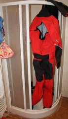 Než jsme si stihla uvědomit, co řekl, dveře se zabouchly a byl pryč. Během dne sice dorazilo pár SMSek, ale dozvěděla jsem se pouze, co sjeli, kolik to mělo kubíků a kdo „krysnul“. Když se mi takhle udělal den volna, tak alespoň všechno pouklízím, vytřu zem apod. Tady jsem slušně narazila. Nikdy neuklízet, když jede na vodu! Přijede, a kromě sebe dotáhne do bytu spoustu jehličí, trávu, listí a veškerý bordel, který se najde v okolí řek. Důležité je všechny věci vybalit, náležitě protřepat a rozvěsit, aby se třeba nepolámal zip u sucháče. Jednou jsem prodělala malý infarkt, když přijel večer domů a do sprchového koutu si pověsil sucháč. Lekla jsem se, že se nám ve sprše někdo oběsil.