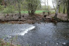 Po 100 metrech je před námi rozdvojení toku. Když pojedeme vlevo přes nízký stupeň, na soutoku pod největším ostrovem na řece jsme po 300 m rychlé vody ve větším spádu. Pojeďme však vpravo. Chrudimka tu rychle teče v několika meandrech s pěknými vracáky. Po asi 300 m do ní ústí zprava Lukavický potok. Těsně nad ním míjíme technickou památku, která stojí za krátkou zastávku.