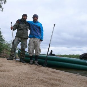 Vstáváme do šedivého rána. Nízké mraky letí nad korunami borovic. Pozorovateli ale neunikne, že skrz řídkou oblačnost místy probleskne modrá obloha. Pečeme k snídani včera chycené pstruhy a zapíjíme je čajem. Libujeme si nad tím, jak chutné mají maso. Koneckonců, není se čemu divit, když vyrůstají v tak čisté vodě. Mimochodem, už od Ivala pijeme vodu přímo z řeky nebo z jezera a nezaznamenali jsme žádné zdravotní potíže.