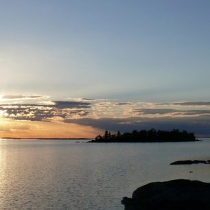 Mrholí. Oproti včerejšímu teplému počasí klesla teplota asi na 9 °C. Projíždíme ústím Ivalojoki a vstupujeme do vod Inarijärvi. Díky silnému větru postupujeme pomalu. Využíváme proto každé příležitosti, abychom se schovali v závětří ostrůvků nebo výběžků, které potkáváme cestou.