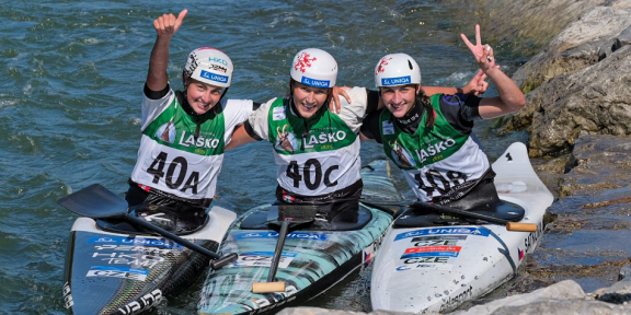 Další zlato do sbírky přidaly singlkanoistky, a to navzdory jednomu trestnému doteku. Do závodu vjížděly jako poslední, jakožto obhájkyně titulu z posledního šampionátu. V první polovině trati se triu ve složení Gabriela Satková, Martina Satková a Eva Říhová nepodařilo správně prostřídat lodě a sestry Satkovy si vyměnily pořadí, v poslední protivodě si Gabriela převzala vedení zpět. „Dnes to byl malý rodinný souboj, která ze sester dojede do cíle dřív,“ uvedla s nadsázkou starší Martina. „Jízda to nebyla bezchybná, ale tím, že je zlatá, je opravdu cenná.“
