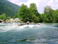 V Kolbnitzu ukončíme plavbu těsně u silničního mostu na pravé straně, kde se nachází klidný plácek jak na naložení lodí, tak na menší piknik na dvou dřevěných stolcích položených ve stínu. O půl kilometru dál už začíná vzdutí přehrady, jet dále tedy nemá smysl.
