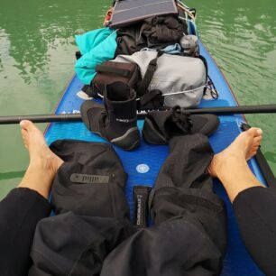 A pak musí být výbava lehká. Sice mi ji veze plovák, ale to tahání věcí k vodě a od ní je hodně náročné. Po každé cestě jsem si psala, co jsem nepotřebovala, a co naopak bylo nejpoužívanější nebo nejvíc užitečné, a postupně se to vystříbřilo.