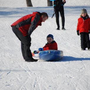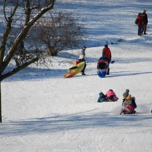 V neděli dopoledne na Petříně řádilo mnoho dětí. Pro začátek jsme se k nim přidali s vlastními potomky výhradně na bobech, aby si na nás ostatní přivykli. Nalákána na žrádlo, opustila většina dětí v čase před nedělním obědem svah a brzy se povedlo prakticky bezvýhradně ovládnout prostor cíle, nezbytný pro bezpečný dojezd.