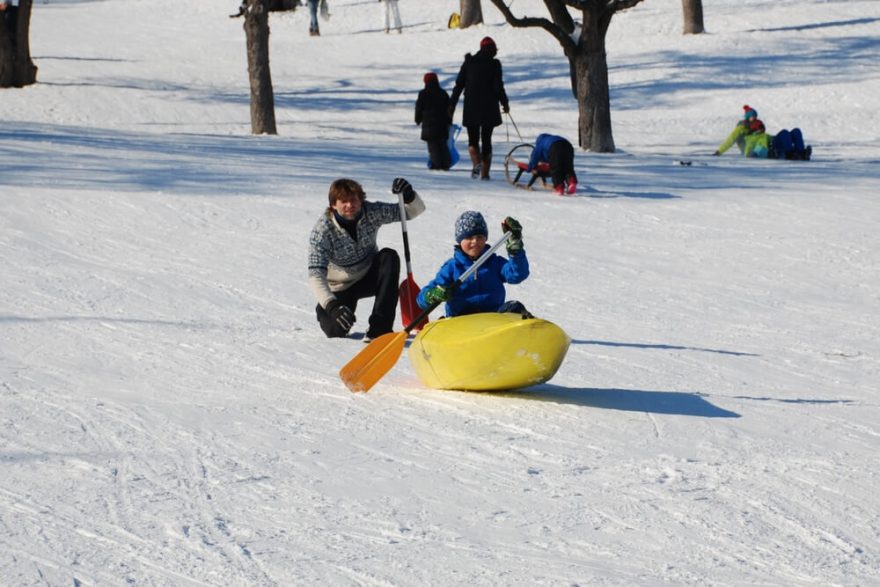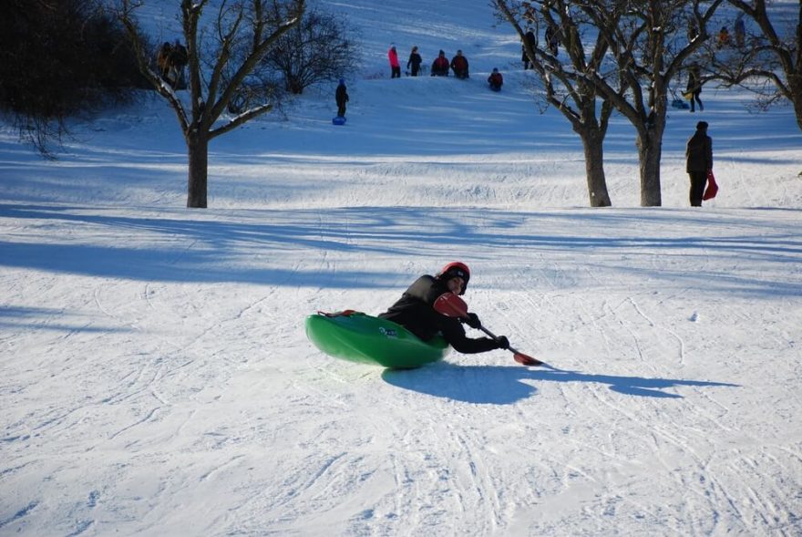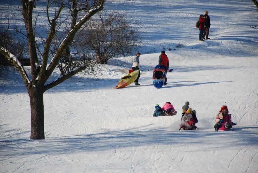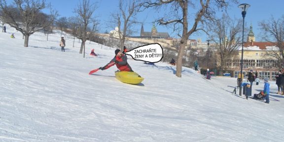 Tak až… jestli zase někdy v Praze nasněží a někdo to do té doby zase nezakáže, přijďte pádlovat na Petřín. Určitě se najde dost náhodných kolemjdoucích na nedělní vycházce s kajakem na ustanovení závodu.