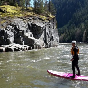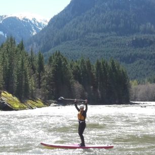 První víkend vhodný k výpravě na paddleboardech jsme se vrhli rovnou na Elaho river a rozhodli jsme se prozkoumat posledních pár kilometrů před soutokem s řekou Squamish. Ondra odhadl, že má Elaho vody tak akorát. „Nerozumím, jak akorát?“ Ptala jsem se s lehkými obavami. „Že se nerozbiješ o kameny a zároveň tě to neutopí.“ Odpověděl, jako by mě chtěl uklidnit.
