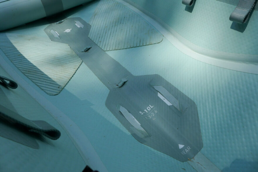 Zprvu jsem se trochu obával, že široký střed lodě bude pro pádlování háčka i zadáka překážet, ale není tomu tak. V tomto ohledu je velikou výhodou, že drop-stitch prvky jsou ploché, nikoliv objemné jako klasické nafukovací válce.