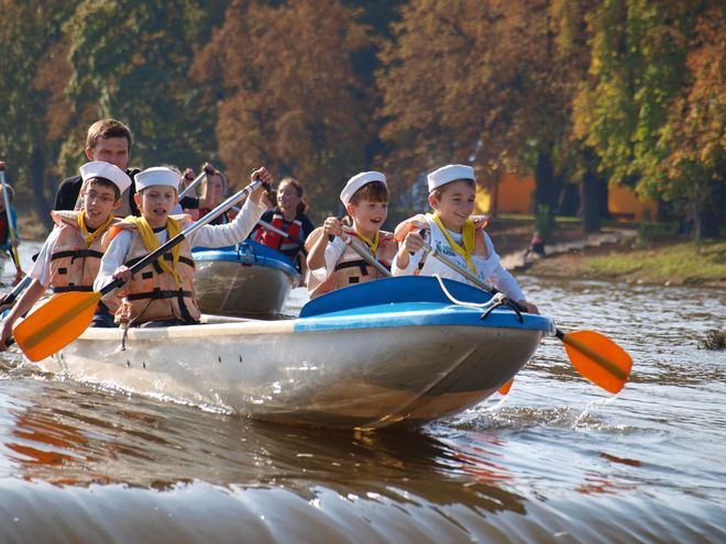 4/ Sportovní lodě: Libovolné jedno nebo dvoučlenné posádky na rychlostní nebo sjezdové kánoi (C1, C2) nebo kajaku (K1, K2). Podkategorie: ženy/mix; do 18 let.