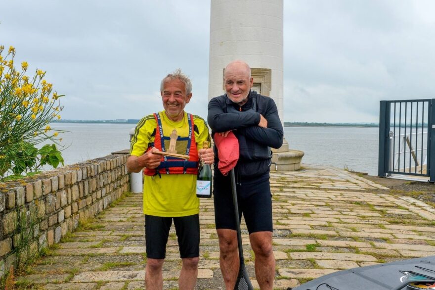 Víme, že cíl je u majáku v Paimboeuf na levém břehu. Konečně ho vidím, a tak vytahuji foťák, abych měl zdokumentováno, jak dojíždíme. To ale Pašík nedává. Nahromaděné odříkání, kdy mi před závodem povolil fotit, se v něm uvolnilo. Pěkně od plic mi nadává. „Choroši, to nemyslíš vážně, my finišujeme a ty si klidně chceš fotit!“ Do cíle dojíždíme sami, nikým neohrožováni, tak jakýpak finiš. Na pláži nás vítá Alain Morvan – ten, který za uspořádání tohoto ročníku může, naši Jarda s Honzou, fotograf závodu a další. Máme to za sebou. Průměrnou rychlost ovlivnil odliv, takže pěkných 11,7 km/h.